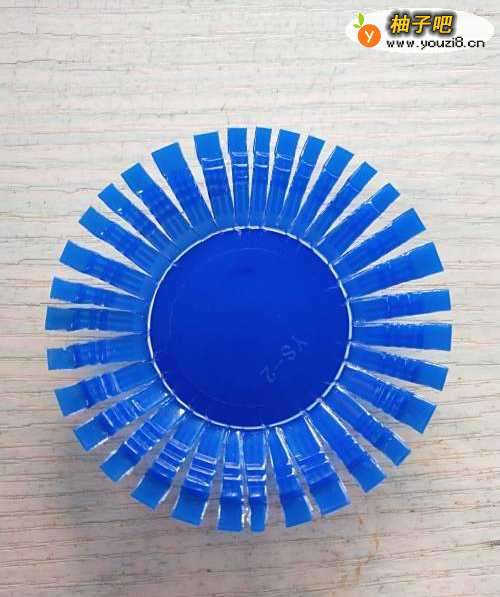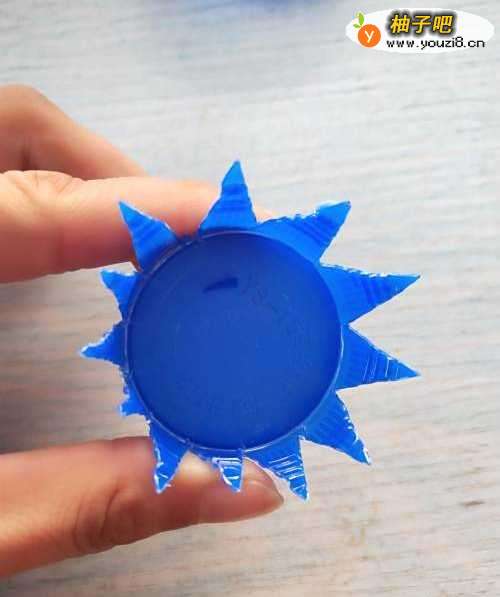 2如图,用剪刀把瓶盖周围剪出一道一道的口子。