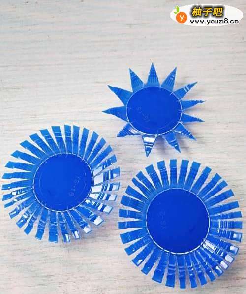 3如图,将剪好的瓶盖用掌心将其压平。