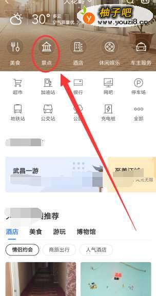7这时,就可以搜索到风景区了,点击你想要去那里,比如你想去黄鹤楼,那就点击,如图所示