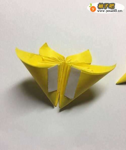 16粘贴最后一个花瓣时,粘贴好的花瓣的左右两边都贴上双面胶。