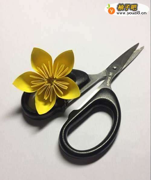 17把最后一个花瓣粘贴好。一朵酷酷的漂亮的樱花就完成了。