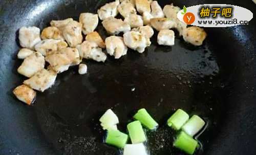 鸡里脊肉切丁,以腌料抓匀,腌制15分钟