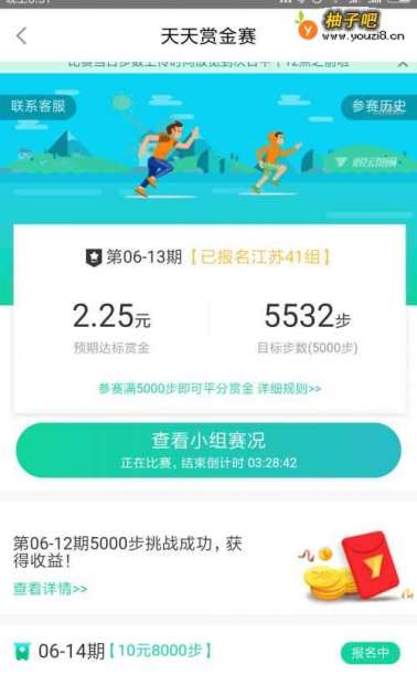 6打开悦运动,点击天天赏金赛,报名发生和支付宝,QQ一样,奖励金有时候多有时候少。