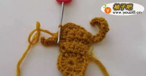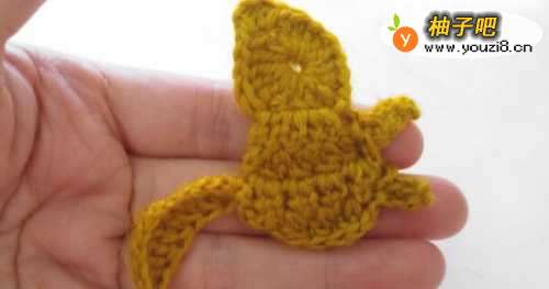8然后再拉4个辫子针,返回在倒数第2针开始顺次钩织2个短针,一个中长针,然后抽线断线,这样一只松鼠就钩织好了。