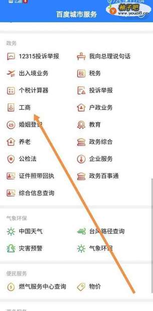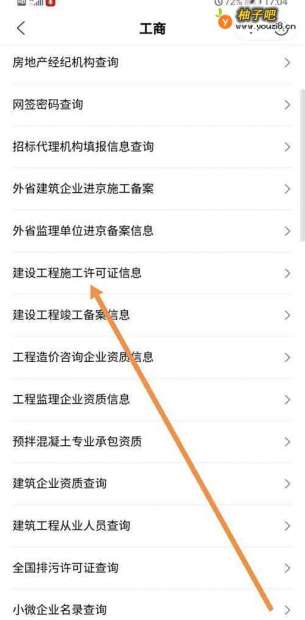 5点击打开工商后,如图所示找到建设工程施工许可证信息。
