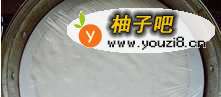 2在盘底抹一层香油,将面放在盘中,包上保鲜膜