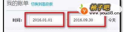 若是查从今年的1月1日到9月30日的购物账单,就在“时间”这里,开始时间设置为2016年1月1日;结束时间设置为2016年9月30日;