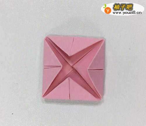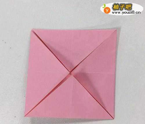 准备一张方形纸,对角和平行面分别对折以后打开,保留折痕;