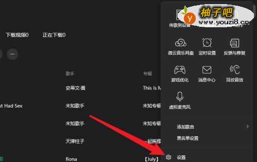 3点击菜单中的【设置】选项。