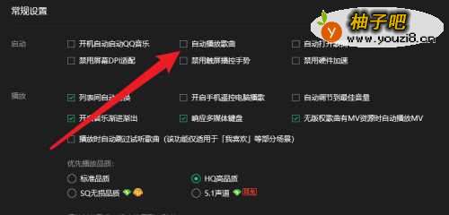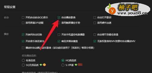 5点击勾选【自动播放歌曲】设置项即可。