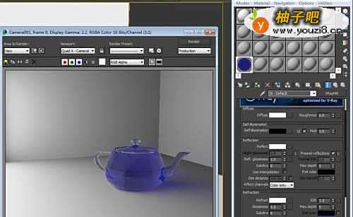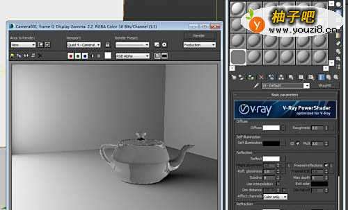 2然后我们给茶壶一个材质球,再如图转换成VR材质球