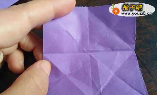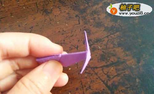 5然后把彩纸插在一起,把两个角插进折纸里。