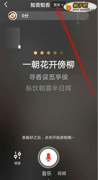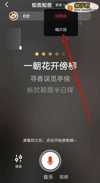 5接下来在打开的K歌页面中,我们点击音乐名后面的“整首”下拉按钮。
