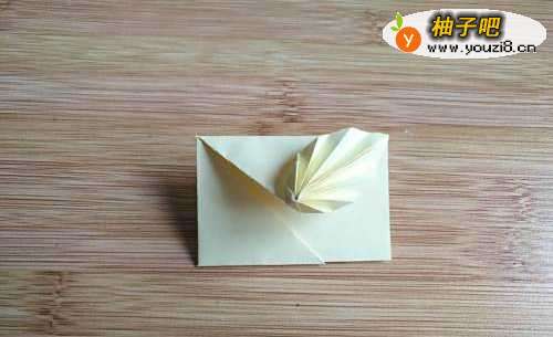 第八步:把右侧的边向左翻折,这样树叶信封就折好了。