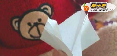 9剩下的两部分就可以用做纸鹤的头部和尾部了,头部可以少折一点,靠近纸的上段,尾部可以多折一点,靠近纸的下部,纸鹤就完成了