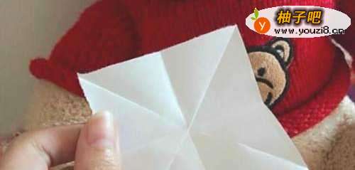 7右边和反面同理,将四个小角都折叠进去,然后压紧,折出折痕