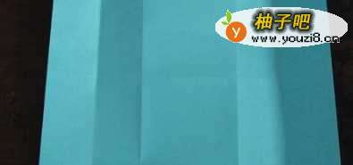4把彩纸转一下,我们按照折痕把两侧的边竖立起来,再把两侧的边拉开,然后我们把上侧的边压平就可以。