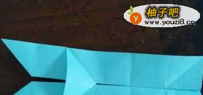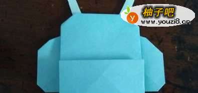 7下面我们把下边的部分向上折,然后再向下折。机器人的腿我们把上边的四个角分别向内折,然后再打开顺势压平。
