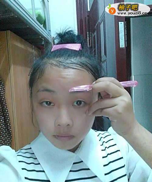 6画眉毛:选好颜色之后,先修眉,眉毛不需留太多,建议第一次修眉到专业店里去,不过如果自己不介意的话也可以学一下,眉刀横放,与眉毛始终保持15度倾斜,先把眉毛修少,再修眉形。中间不要留,根据自己的脸型来确定眉形。再用眉笔轻轻滴横画过去,越到后面就要越轻,最后面可以来回钩画。建议颜色不要太深。