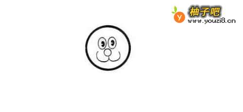 3第3步,然后把他的鼻子还有嘴巴画出来,鼻子用的是小圆圈,嘴巴是用两个大圆弧,