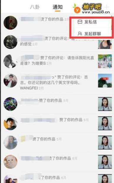 3点击消息右上角的+号,就会出现发私信和发起群聊,我们选择群聊功能进入。