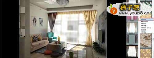 3编辑完毕后,任意点击一款窗帘挂入看效果。鼠标右击挂入的窗帘,弹出“区域属性”框,可对窗帘的透明度及明暗度进行调整。鼠标点击帘身,可自由更换布料,效果如图所示;