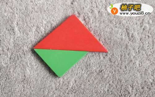 3将绿色三角形斜边水平居于顶部,放在红色三角形的下面挨着,左端一齐。