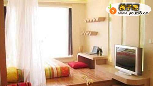 2做榻榻米。榻榻米作为一种休闲收纳设计,是很多年轻人的选择。因为有了榻榻米,你可以节约出放置床的位置。另外,小户型的榻榻米尽量靠墙安装,为了与之协调,最好不要选择过分华丽的吊顶,保持简约风格。