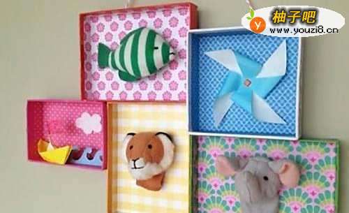 将鞋盒,鞋盖巧妙装饰一下,挂在墙上,既美观又环保。有什么比自己动手,更有成就感的呢。