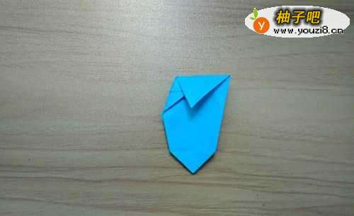 9正面以中间线的某个点为准,左右两侧分别折到该点成为两个三角形。