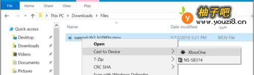 6播放音乐或视频文件在您的Xbox一,只需在文件管理器或Windows资源管理器中右键单击它们,并使用“投放到装置”或“播放”菜单中选择您的Xbox之一