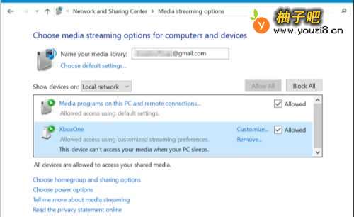 要激活Windows附带的DLNA服务器,打开控制面板,搜索“媒体”,并点击网络和共享中心“媒体流选项”链接。 点击“启用媒体流”在这里按钮。 这使得你的音乐,图片和视频可用于流媒体库中可用的文件。