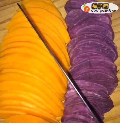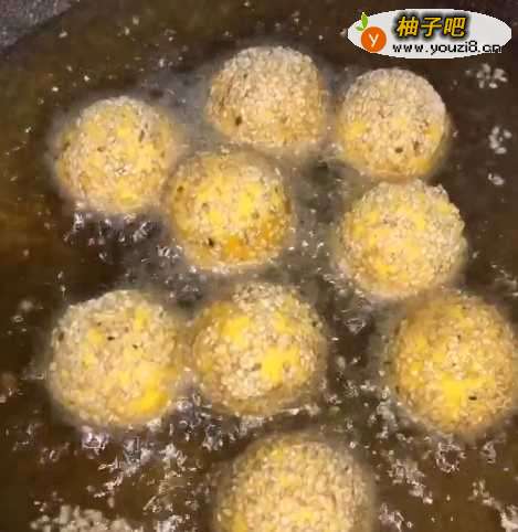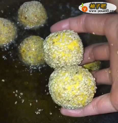 5把紫薯包起来,团成圆球,裹上芝麻;
