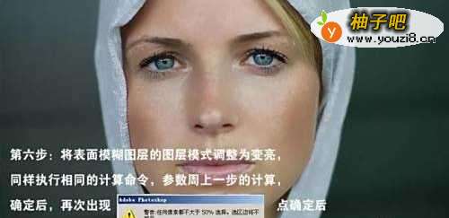 6将表面模糊图层的图层混合模式改为“变亮”,同样执行相同的计算命令,参数同上一步的计算,确定后再次出现下面所示的对话框,点确定。再次创建曲线调整图层,所有参数模式,并确定后执行自动色阶命令;