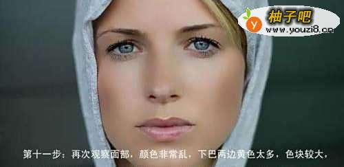11再次观察面板,颜色非常乱,下巴两边黄色太多,色块较大,利用可选颜色对哥哥地方进行单独调整,以达到统一肤色的目的;
