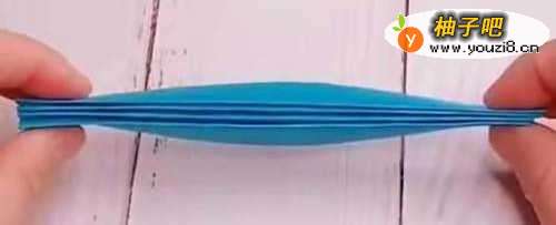 6把折好的正方形蓝彩纸放入折好的长方形蓝彩纸里面。再把做好的花朵放入就可以了。见下图
