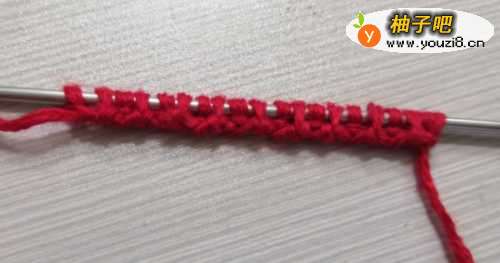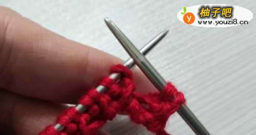 第一针滑到右针上,不织,然后按照下图所示的方法挂线,第2针按照挂线的方法织正针,毛衣针从挂线的分叉那里穿出来,见下图所示。
