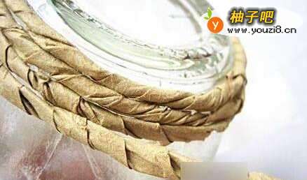 4将纸卷粘在罐头瓶子上,缠绕的均匀一些,不要有露出缝隙的地方