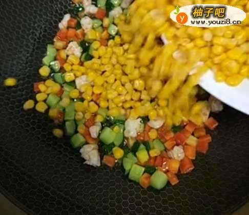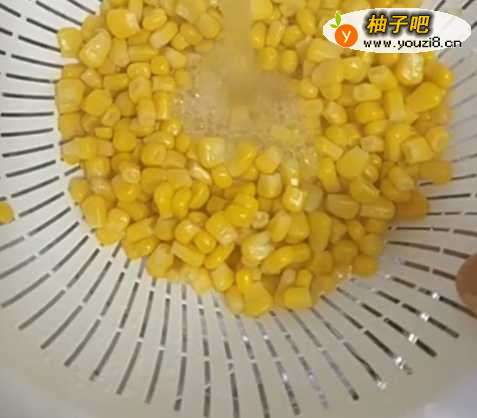 准备好煮熟的玉米粒,捞出过凉水,并控干水分;