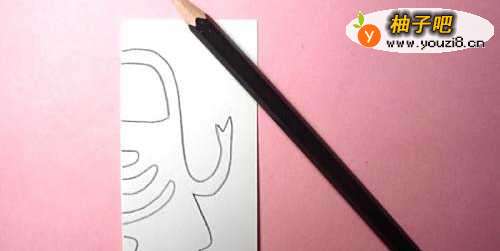 2接着,把正方形卡纸对折一半,并用铅笔在白纸上,画出工漂亮的围裙的图形,根据对称图形,这里画出半个图形,如下图所示。