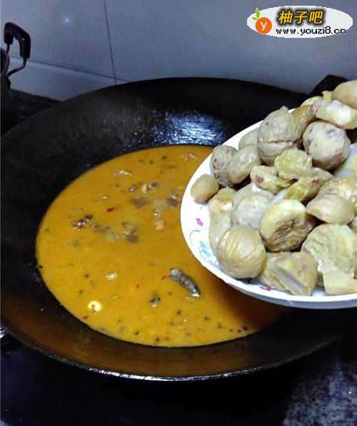 9汤汁煮20分钟后,放入板栗。