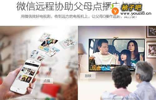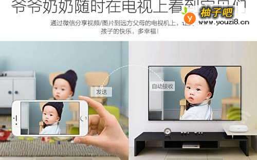 2子女通过“桔豆盒子”公众号可以发送照片/视频/语音,以及点播影视到远方父母的电视机上,爸妈打开电视首页的“家人分享圈”和“影视推荐”,就能直接看到家人分享的点滴以及推送的电视节目。