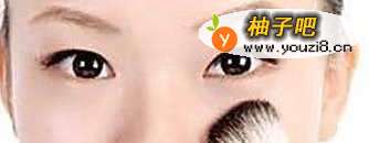 3中号眼影刷蘸取具有保湿效果的眼部专用蜜粉,把它轻轻的扫过刚才涂抹了遮瑕膏的范围。