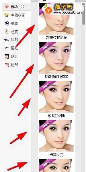 6右边会出现各种上妆的样式根据自己喜爱选择
