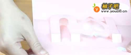 2用刻刀刻出实线图案,再按虚线折叠出立体的文字。