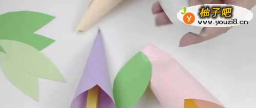 7将花瓣卷成锥筒形粘合。
