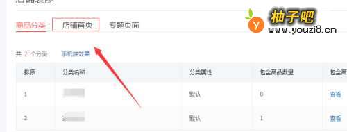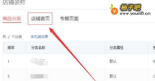 3第三,进入店铺装修页面后,有三个选项,分别为商品分类,店铺首页,专题页面,选择 店铺首页 选项,进入店铺首页的 页面,如下图所示;