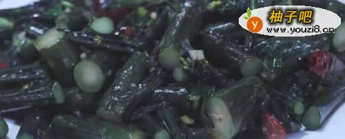 4煸炒出香味,放入我们前面摘好的油菜苔。