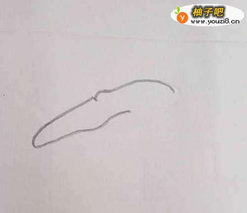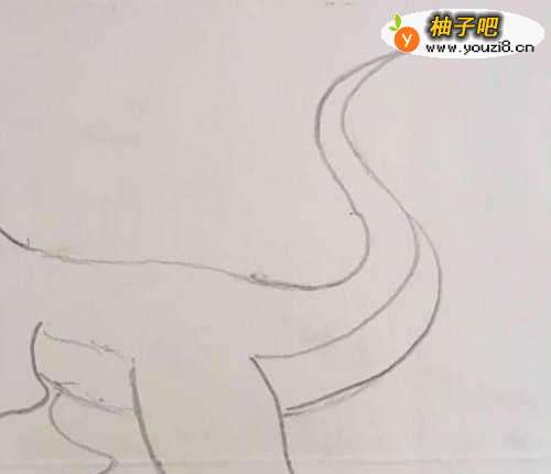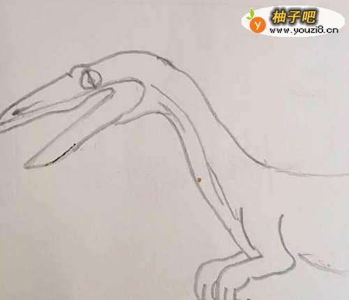 第一步 先画上恐龙长长的嘴巴和它坚硬的脑壳