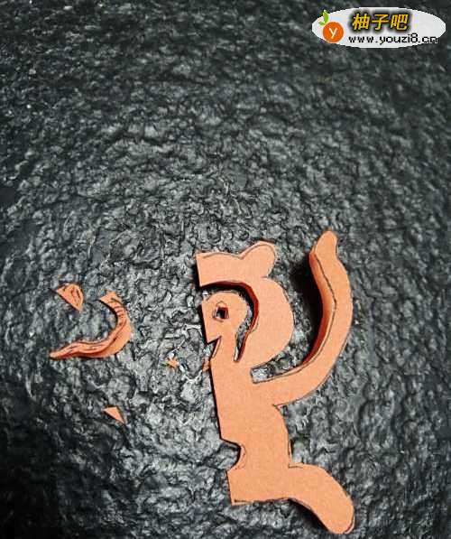 6第六步,接着我们继续剪裁可爱的小猴子的眼睛和嘴巴,注意细节部分的剪裁。
